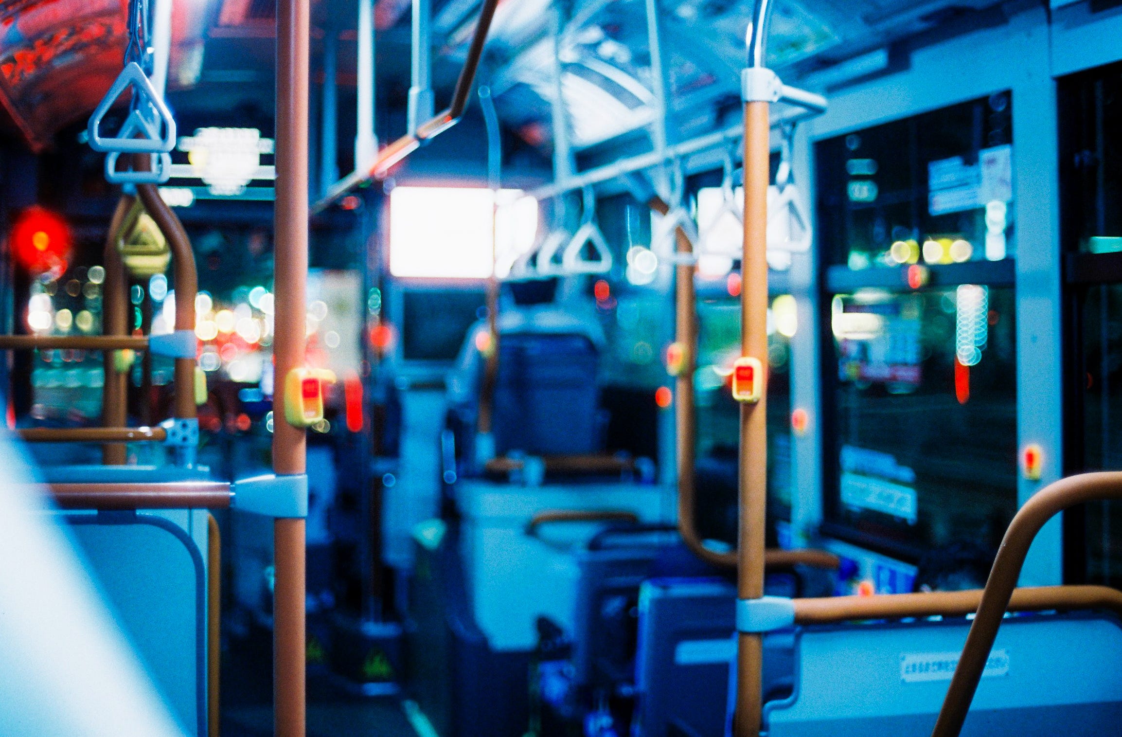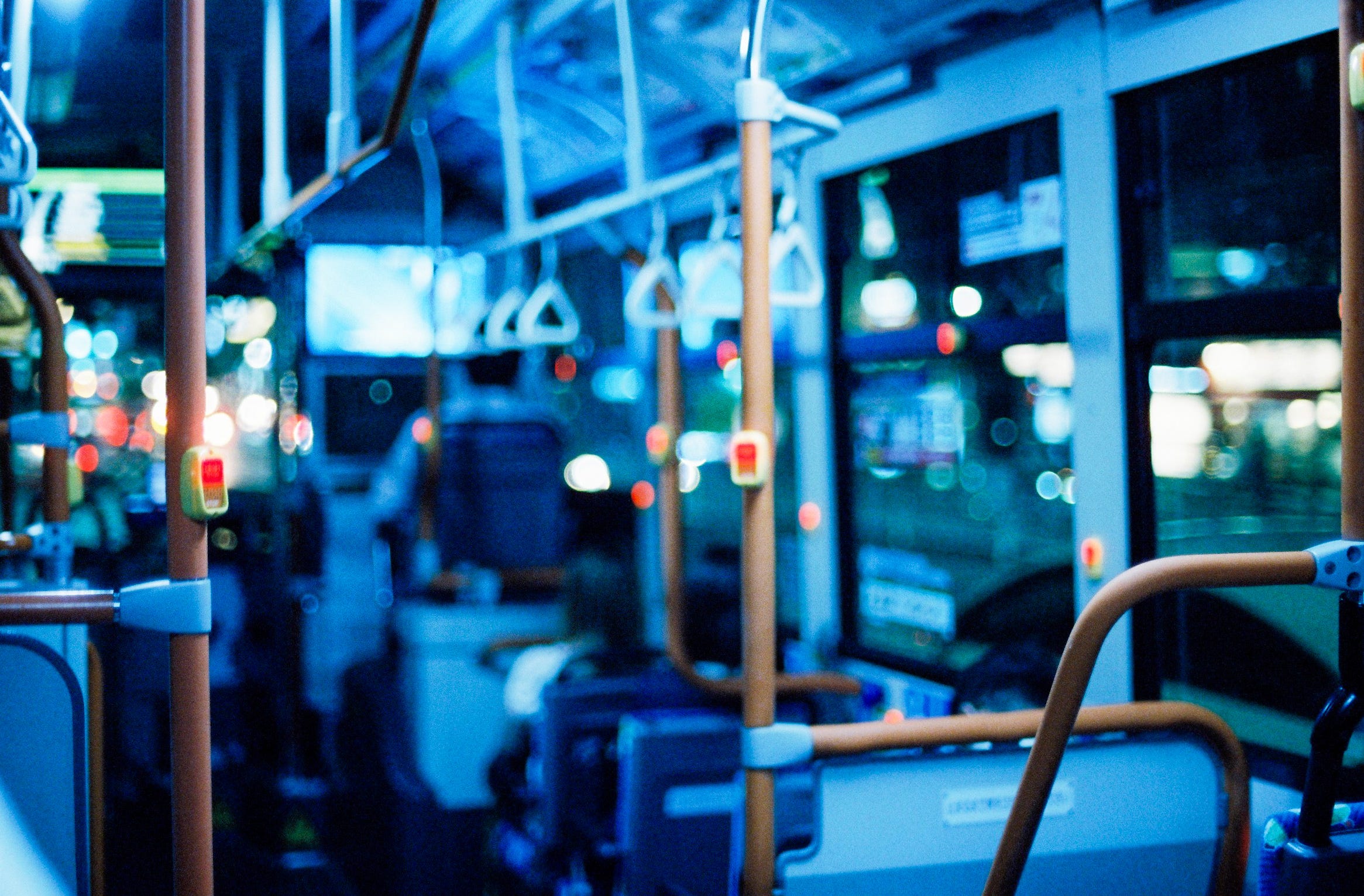 Hence, I gave it another try (first picture), ‘overexposing’ 2 stops (at 1/125), hoping to recover more light from the little red glowing buttons, at the cost of a blasting-lightning from the bus' screen in the middle.