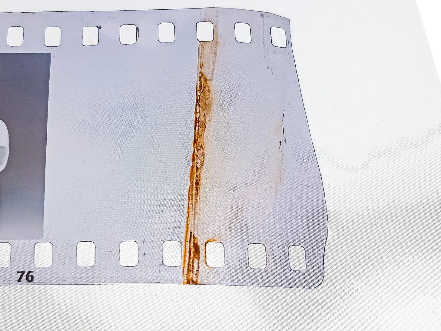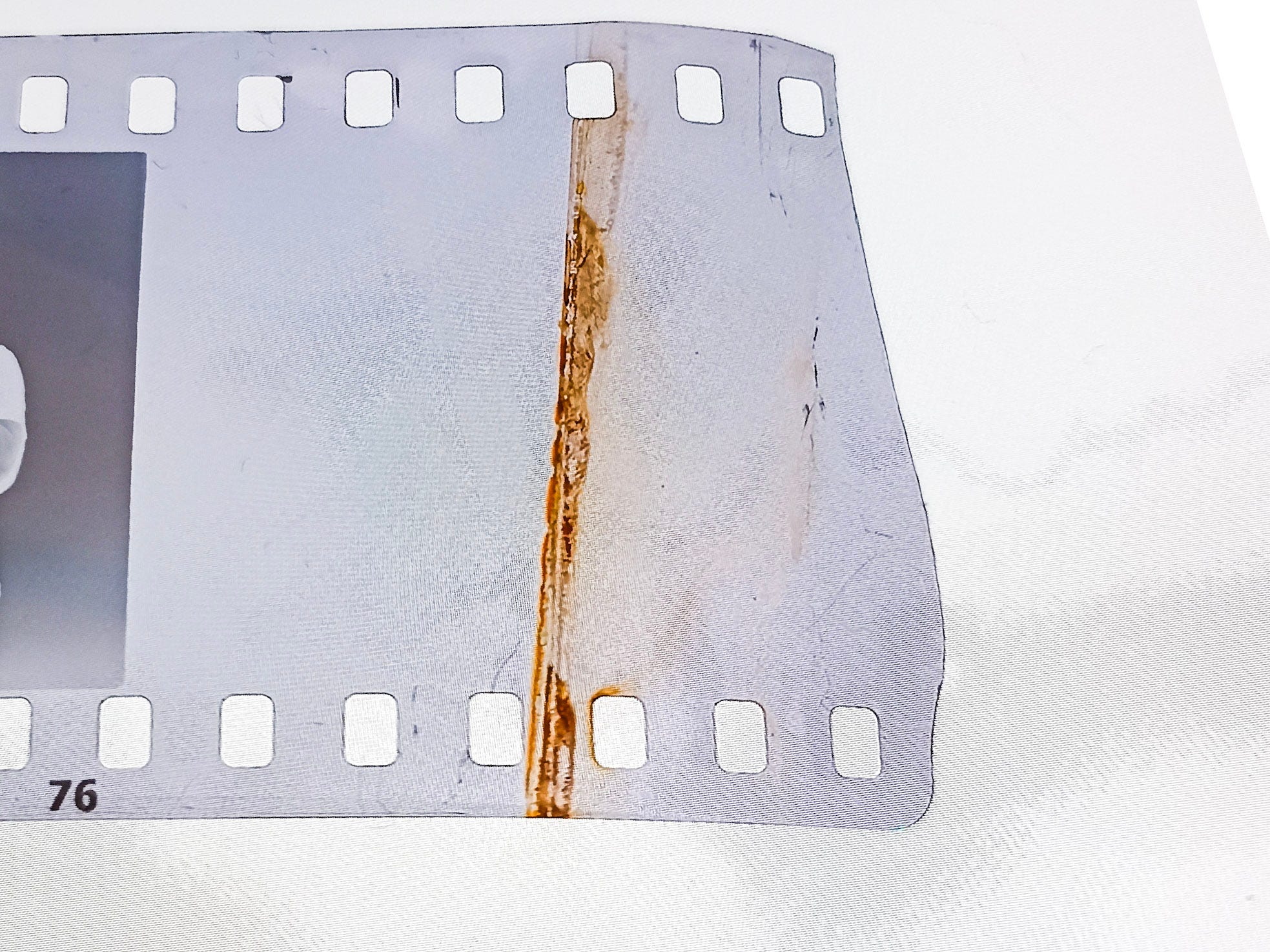 When spooling, it is incredibly easy to ruin some frames if you are not gentle with the film. Please remember all your precious memories are still light-sensitive, and if you smash them into the reel, you will damage the edges (example below), which is extremely annoying when scanning or printing in the darkroom.
